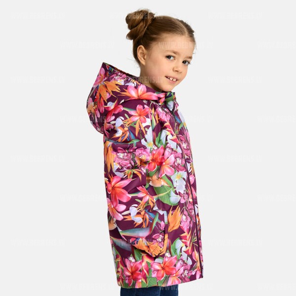 Bērnu ūdens- un vēja izturīga jaka. Elpojošs virsaudums. Jakas iekšpusē ir mīksts oderaudums. Rāvējslēdzēja stiprinājums. Piedurkņu galos un kapuces malā iestrādāta gumijas lente. Apakšmalā regulējams gumijas auklas tunelis. Virsaudumam atstarojošas detaļas.