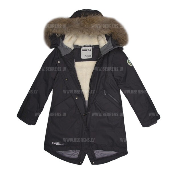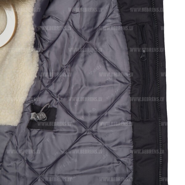 ērnu ūdens un vēja necaurlaidīga ziemas jaka. Gaisu caurlaidīgs virsējais audums. Jakas odere no mīksta auduma. Muguras augšdaļā un kapuces iekšējos sānos jērādas imitācijas odere. Regulējama kapuce. Rievotas piedurknes. Priekšpusē apšūts divvirziena rāvējslēdzējs. Magnētiski aizdarāmas kabatas. Jostas vietā aizdare ar stoperi. Ūdens necaurlaidīgi līmēti izšuvumi. Kapucei noņemama kažokādas mala. Auduma virspusē atstarojošas detaļas.