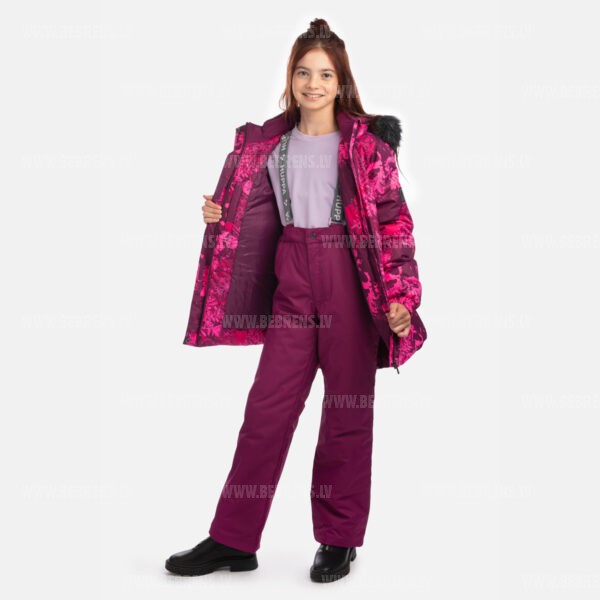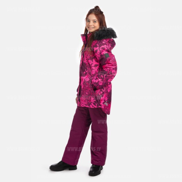 Bērnu jakas un bikšu komplekts. Ūdensnecaurlaidīgs un vēja necaurlaidīgs, elpojošs virsējais audums. Jakas un bikšu iekšpuse ir izgatavota no mīksta oderes auduma. Elastīgas aproces un jostasvieta. Noņemama kapuce, kas piestiprinās pie apkakles ar spiedpogām. Noņemama mākslīgās kažokādas apdare uz kapuces. Biksēm ir noņemamas, regulējamas elastīgas bikšturi. Elastīga jostasvieta. Sniega getras pie kāju galiem. Elastīgs tunelis ar aizbāžņiem kāju galos. Ūdensnecaurlaidīgas līmētas vīles. Gan jakai, gan biksēm ir atstarojošas detaļas.