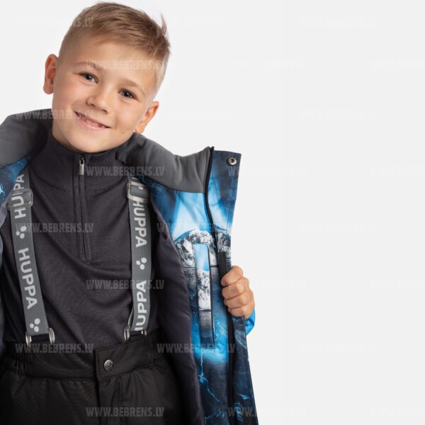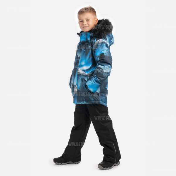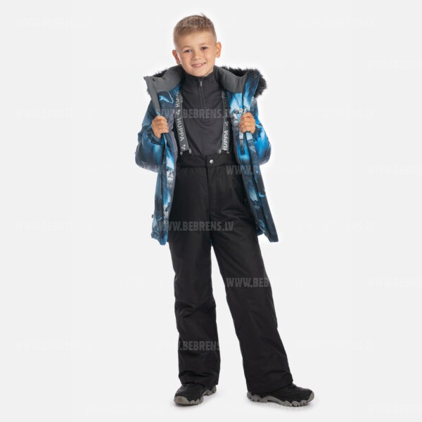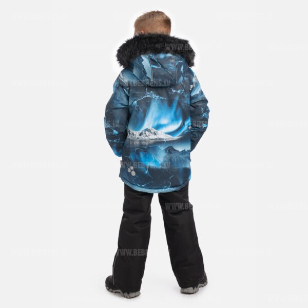 Bērnu ziemas jakas un bikšu komplekts. Ūdensnecaurlaidīgs un vēja necaurlaidīgs, elpojošs virsējais audums. Jakas un bikšu iekšpuse ir izgatavota no mīksta oderes auduma. Jakai ir 300 g izolācijas, bet biksēm - 160 g izolācijas. Integrēta elastīga lente piedurkņu galos. Noņemama kapuce, kas piestiprinās pie apkakles ar spiedpogām. Noņemama mākslīgās kažokādas apdare uz kapuces. Noņemamas, regulējamas elastīgas lencītes uz biksēm. Integrēta elastīga lente jostasvietā. Sniega getras kāju galos. Elastīga aukla ar aizbāžņiem kāju galos. Ūdensnecaurlaidīgas līmētas vīles. Gan jakai, gan biksēm ir atstarojošas detaļas.