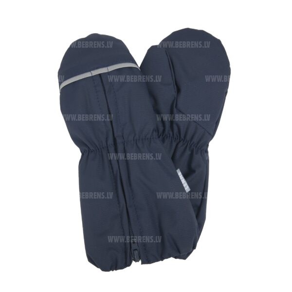 Rāvējslēdzējs augšpusē atvieglo cimdu uzvilkšanu. Atstarojošā josla padara jūsu bērnu redzamu tumsā.