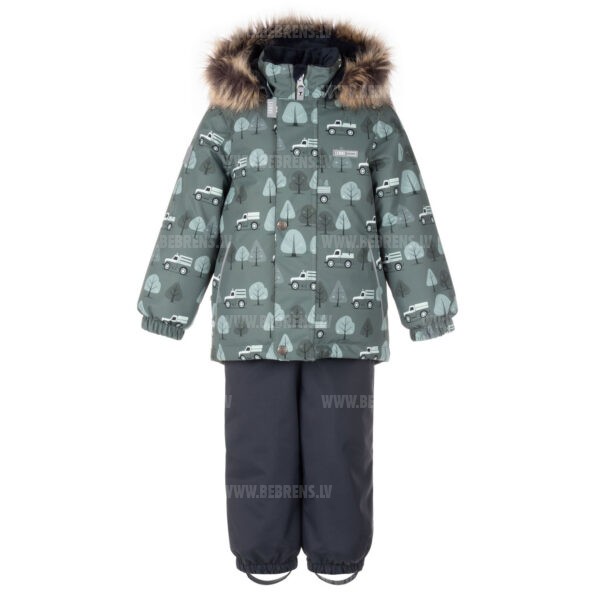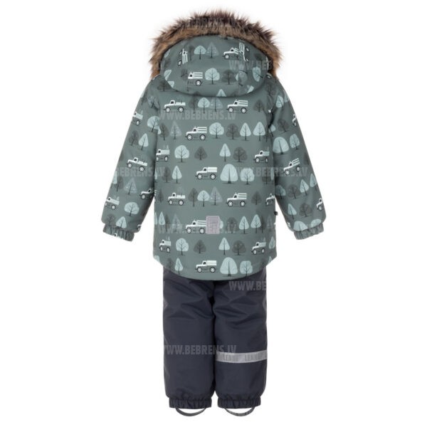 Jaka ar uzmanību piesaistošu rakstu apvienojumā ar klasiskām vienkrāsainām ziemas biksēm veido skaistu un praktisku ziemas āra komplektu. Bikses ar regulējamām lencītēm ļauj komplektam pielāgoties bērna augšanai. Bikšu augstā jostasvieta uztur bērna muguru siltu pat aktīvu rotaļu laikā. Dizainā ir iestrādātas atstarojošas detaļas, padarot bērnu redzamu pat tumšajā ziemā. Kniedes aiztaisāmā kapuce ir droša, jo tā atdalās no apģērba, ja tas aizķeras. Regulējamas un noņemamas pēdu cilpas droši notur kāju aproces virs apaviem.