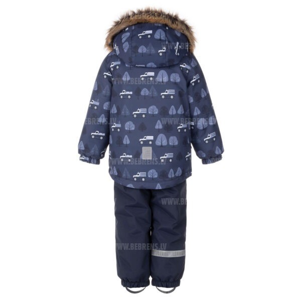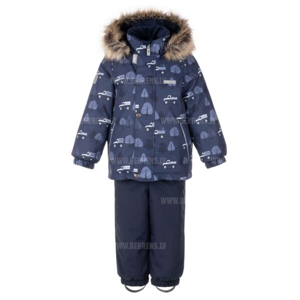 Jaka ar uzmanību piesaistošu rakstu apvienojumā ar klasiskām vienkrāsainām ziemas biksēm veido skaistu un praktisku ziemas āra komplektu. Bikses ar regulējamām lencītēm ļauj komplektam pielāgoties bērna augšanai. Bikšu augstā jostasvieta uztur bērna muguru siltu pat aktīvu rotaļu laikā. Dizainā ir iestrādātas atstarojošas detaļas, padarot bērnu redzamu pat tumšajā ziemā. Kniedes aiztaisāmā kapuce ir droša, jo tā atdalās no apģērba, ja tas aizķeras. Regulējamas un noņemamas pēdu cilpas droši notur kāju aproces virs apaviem.