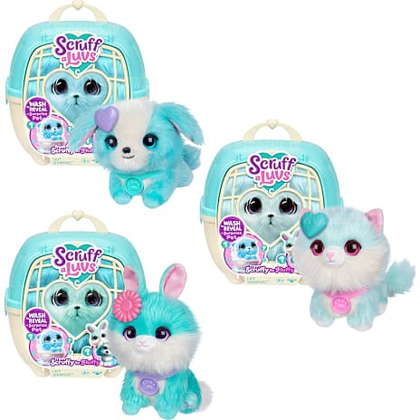 Klasiskais Scruff-a-Luv ir atgriezies ar jaunu sugu un atklāj vēl vairāk pārsteigumu! Šie nabadzīgie mazie dzīvnieki ir pazaudēti un ir jāglābj, bet kuru jūs izglābsit? Kucēnu? Kaķēnu? Vai varbūt zaķi? Katram Scruff-a-Luv ir īpašs ombrē kažociņš, būris, apkakle, birste, matu siksna un sprādze.