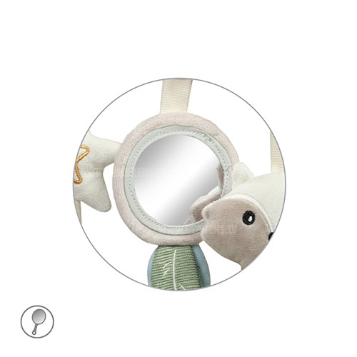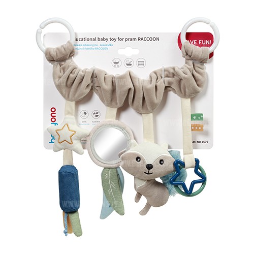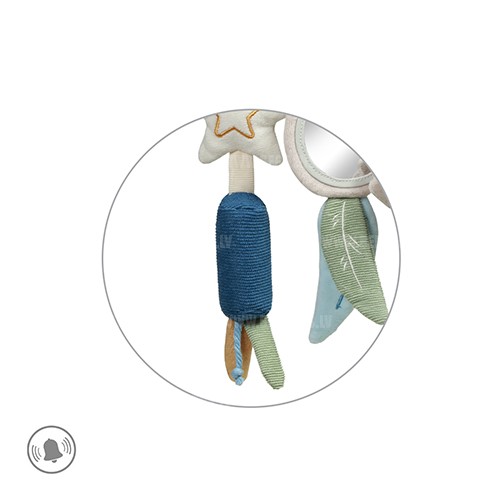 Izglītojošais Jenotsuņa kulons dažādos jūsu bērna pasauli un palīdzēs attīstīt redzes, dzirdes un smalko motoriku. Piestipriniet to pie ratiņiem, šūpuļa vai autokrēsliņa, un tas izklaidēs jūsu mazo pastaigu vai ceļojumu laikā. Kulons, kas pārklāts ar mīkstu materiālu, attēlo burvīgu jenotsu ar čaukstošu asti un burvīgiem zvaniņiem . Jūsu mazulis atradīs arī spoguli, gredzenu un zvaigzni. Rūpīgi atlasītie elementi ir patīkami pieskārienam un piesaista jūsu mazuļa uzmanību ar saviem daudzveidīgajiem rakstiem . Tie ļauj jūsu mazajam izpētīt pasauli un attīstīt smalkās motorikas, spēlējoties.