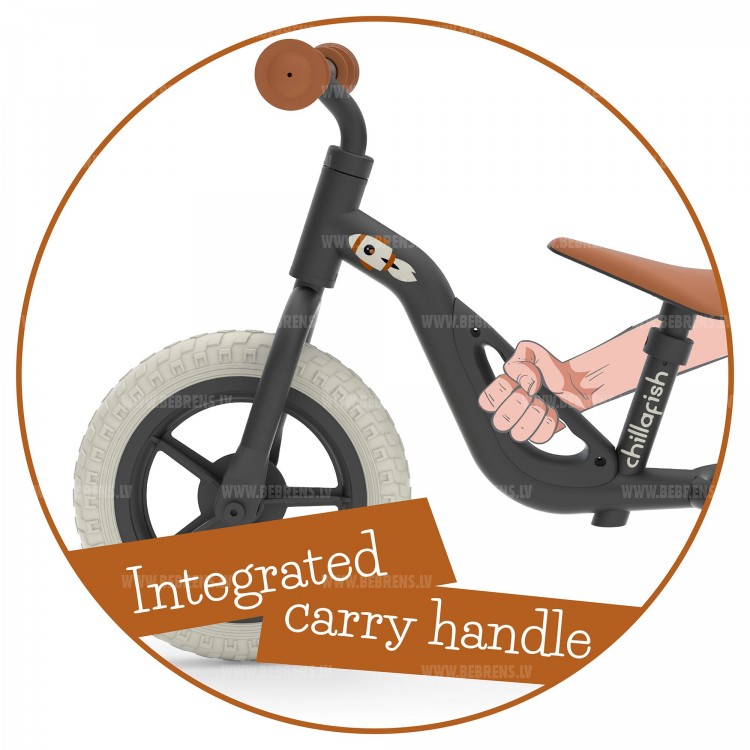 Līdzsvara velosipēds ar 10"collu riepām un integrētu rokturi velo rāmī.