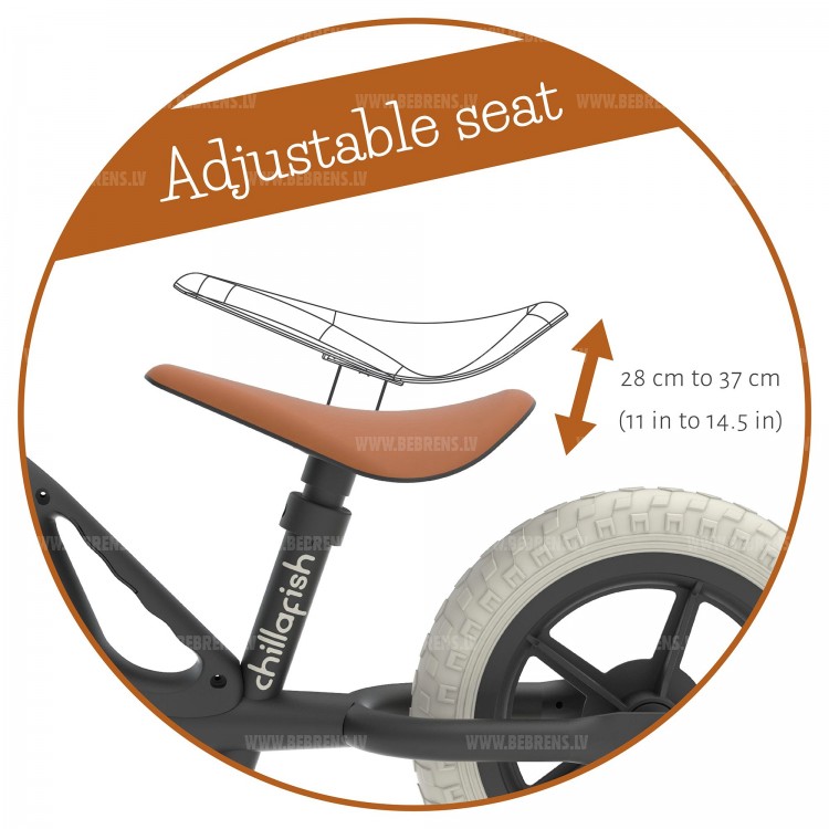 Viegli regulējams sēdeklis un stūre. Sēdekli var regulēt no 28 - 37 cm, bet stūri no 47,6 - 50,4 cm.
