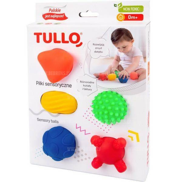 Tullo® sensorās bumbas ir daudzfunkcionālas un drošas rotaļlietas, kas palīdz attīstīt bērna tausti, redzes sajūtu, kustību koordināciju un nodrošina nomierinošu efektu jau no zīdaiņa vecuma. Katra bumba ir ar atšķirīgu faktūru, sniedzot bērnam dažādas maņu pieredzes un veicinot roku un pirkstu kustību precizitāti.